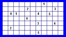 Ora vamos lá a puxar por esses miolos. Pode ser que já saibam como é. Para os pobres coitados que ainda não sabem, a coisa passa-se do seguinte modo: unir o 1 com o 1, o 2 com o 2, o 3 com o 3, etc. Por cada quadrado apenas pode passar uma linha de união, o que quer dizer que a linha que liga os 4s não se pode cruzar, por exemplo, com a linha que liga os 5s.